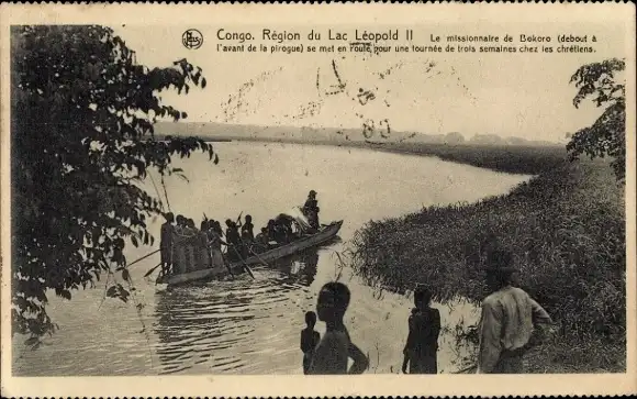 Ak Pool Malebo Stanleypool DR Kongo Zaire, Boot auf dem Fluss, Missionar in der Pirogue, Regio...
