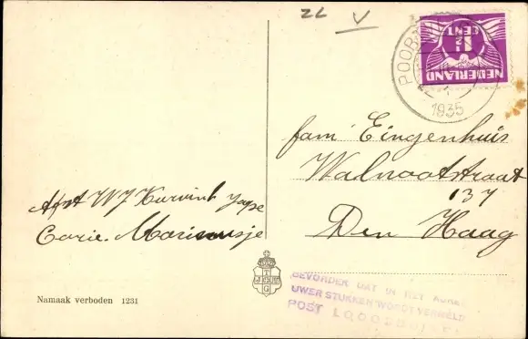 Zustand, siehe Scan, gelaufen, 1935 - ca 14 cm X 9 cm