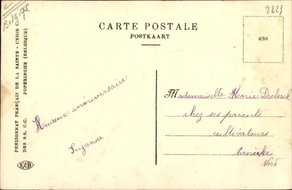 Ak Poperinge Westflandern, Pensionnat Francais de la Sainte Union, Unterricht