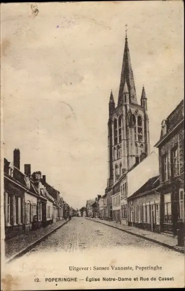 Ak Poperinghe Poperinge Westflandern, Eglise Notre-Dame et Rue de Cassel