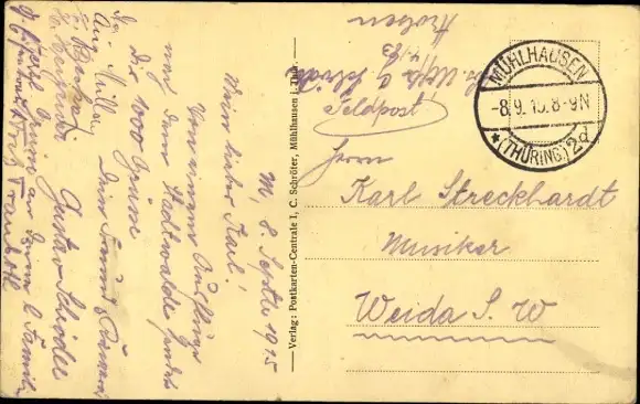 Zustand, siehe Scan, gelaufen, 1915 - ca 9 cm X 14 cm