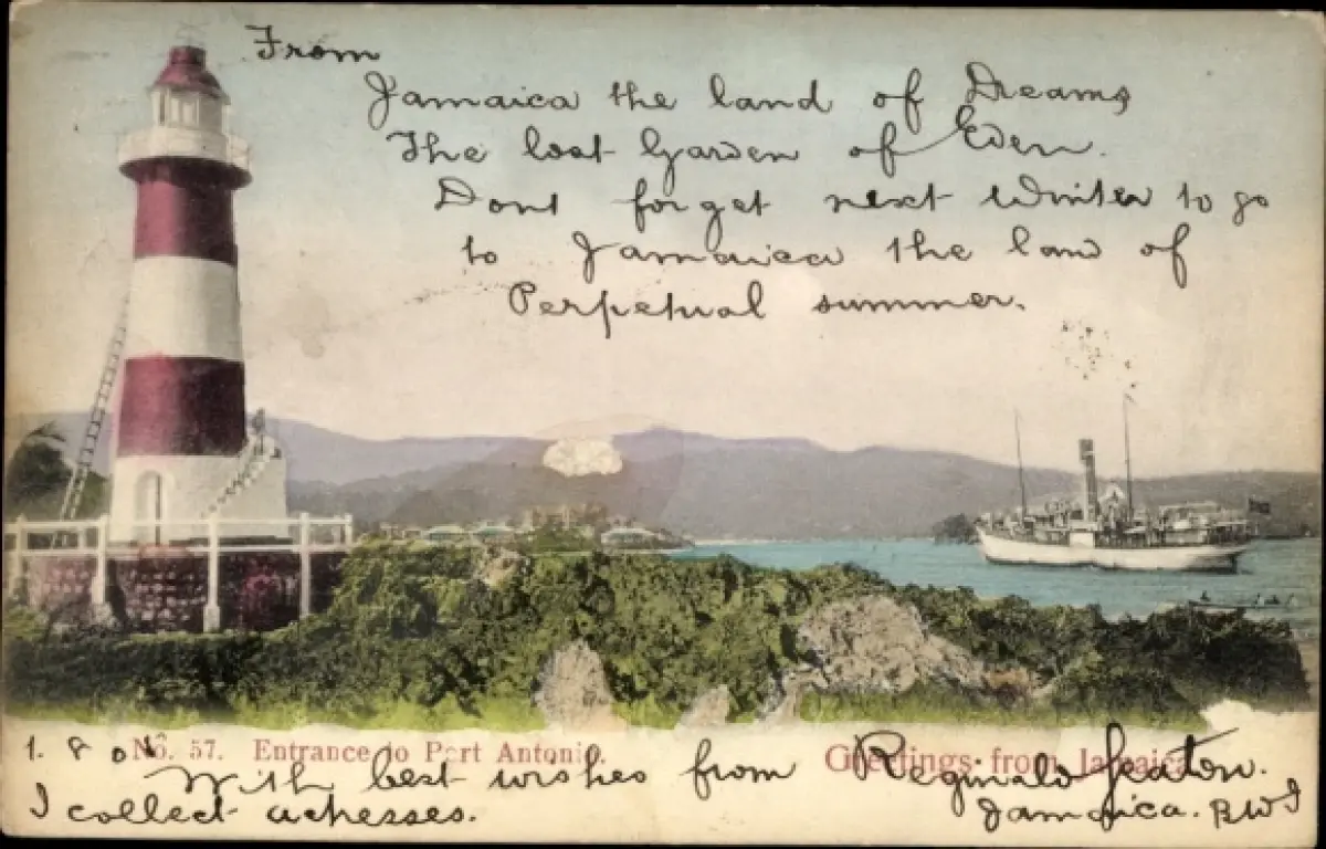 Ak Port Antonio Jamaika, Leuchtturm, Dampfer