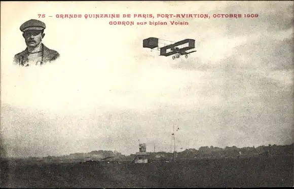 Ak Port Aviation, Gobron en plein vol, Biplan, Luftfahrtpionier
