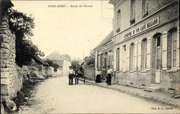 Ak Port Mort Eure, Route de Vernon, Café Billard