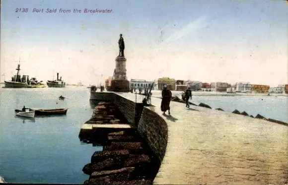 Ak Port Said Ägypten, Ansicht vom Hafendamm aus