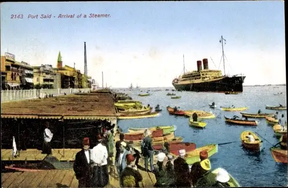 Ak Port Said Ägypten, Arrival of a Steamer, Ankunft von einem Dampfschiff