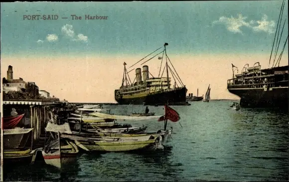 Ansichtskarte, Postkarte, Hafen, Schiffe, Boote, Dampfer, Boot