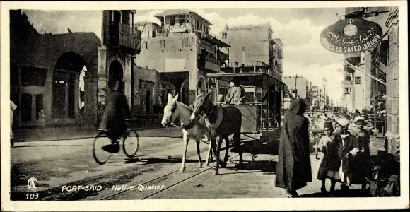 Ak Port Said Ägypten, Native Quarter, Pferdebahn