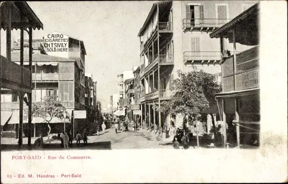Ak Port Said Ägypten, Rue du Commerce, Straßenpartie, Ch. Tsivily, Häuser