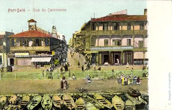 Ak Port Said Ägypten, Rue du Commerce, Straßenpartie, Ruderboote, Häuser