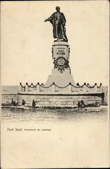 Ak Port Said Ägypten, Statue von Ferdinand de Lesseps