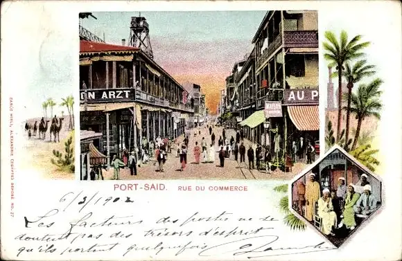 Ak Port Said Ägypten, vue générale de la Rue du Commerce