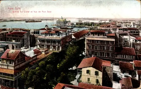 Ak Port Said Egypt, Stadtübersicht mit Kanal