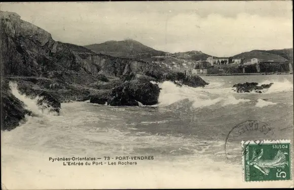 Ak Port Vendres Pyrénées Orientales, L'Entree du Port, Les Rochers