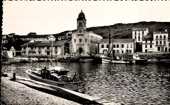 Ak Port Vendres Pyrénées Orientales, Petit Port, Eglise