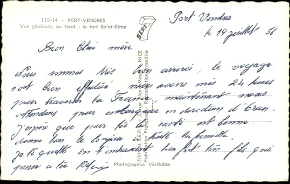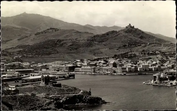 Ak Port Vendres Pyrénées Orientales, Vue generale, au fond, Le fort Saint-Elme
