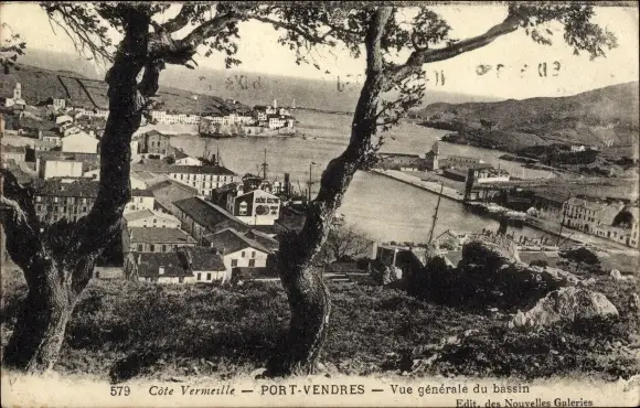 Ak Port Vendres Pyrénées Orientales, Vue generale du bassin