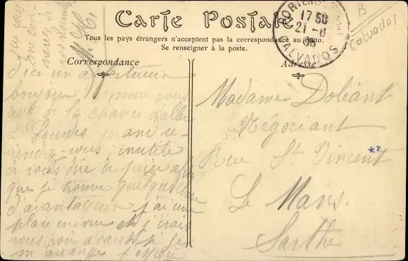 gelaufen 1905, Eckknick links unten, sonst guter Zustand