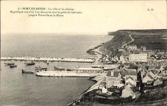 Ak Port en Bessin Calvados, Vue generale, Les Falaises