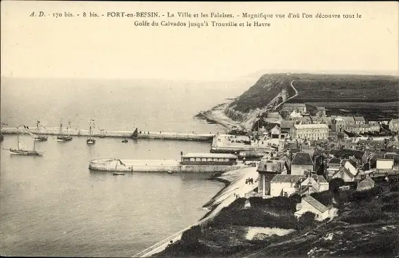 Ak Port en Bessin Calvados, Vue generale, Les Falaises