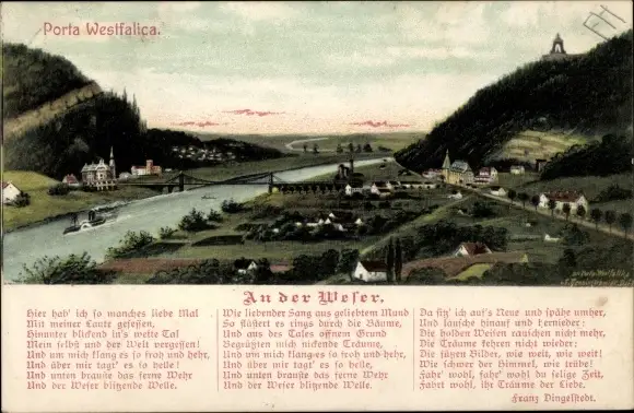 Ak Porta Westfalica an der Weser, Panorama, Gedicht, Weserlied
