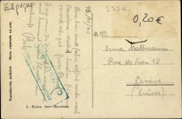 Zustand, siehe Scan, gelaufen, 1940 - ca 14 cm X 9 cm
