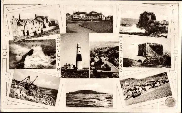 Ak Portland Dorset, Teilansichten, Strand, Leuchtturm