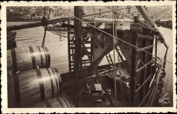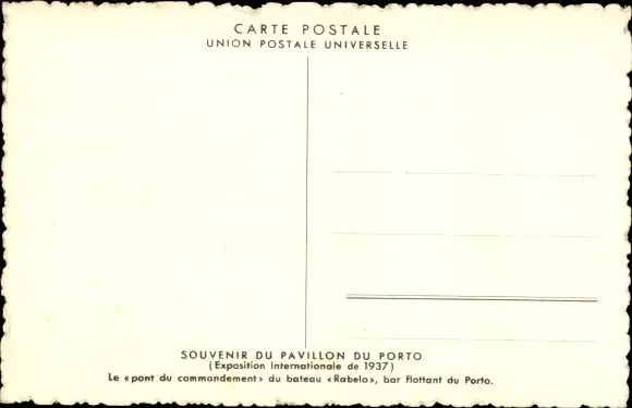 Ak Porto Portugal, Exposition Internationale 1937, le pont du commandement du bateau Rabelo