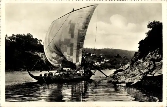 Ak Porto Portugal, Rabelo Boot am Ufer