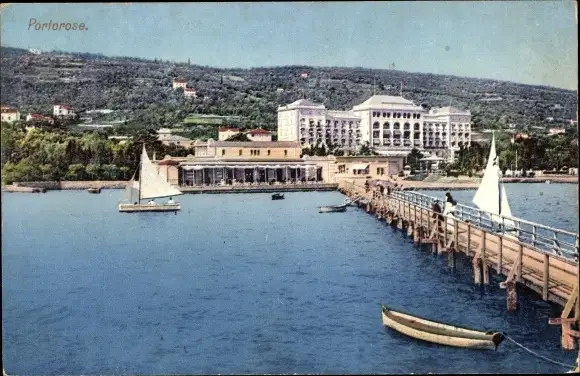 Ak Portorož Portorose Slowenien, Gesamtansicht, Segelboote