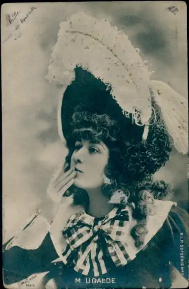 Ak Porträt einer Frau, Hut mit Federn, M. Ugalde