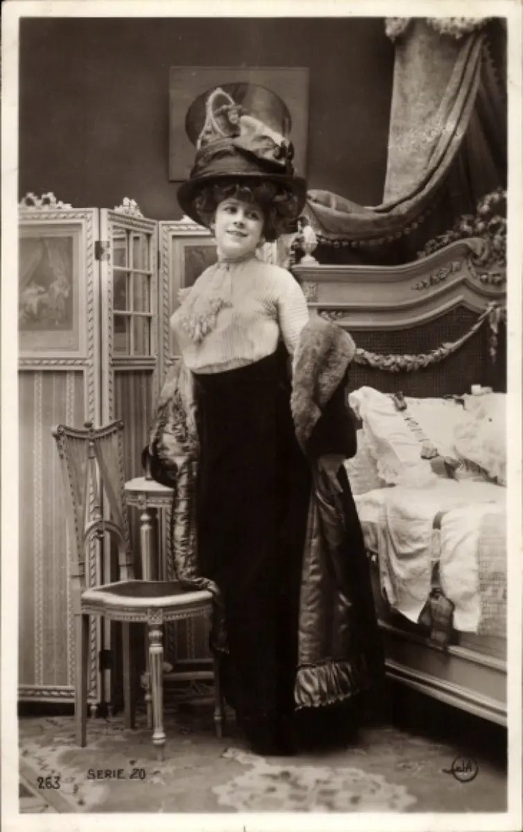 Ak Porträt einer Frau, Schwarzer Rock, Bluse, Hut
