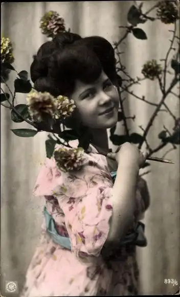Ak Porträt einer jungen Frau, Blumen, Kleid