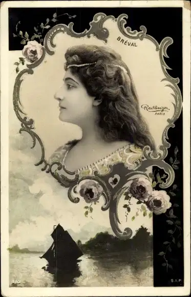 Ak Porträt einer jungen Frau, Breval, Segelschiff