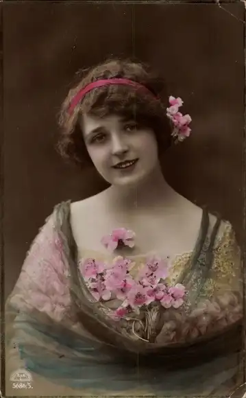 Ak Porträt einer jungen Frau, Kopfschmuck, Blumen