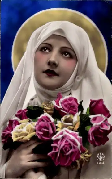 Ak Porträt einer jungen Frau, Nonne, Blumenstrauß
