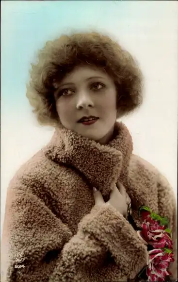 Ak Porträt einer jungen Frau, Winterkleidung, Blumen
