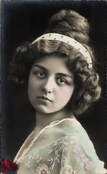 Ak Porträt einer jungen Frau mit lockigen Haaren, Blumenkleid