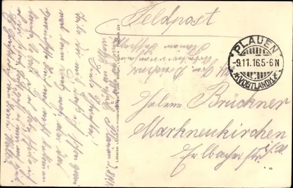 Zustand, siehe Scan, gelaufen, 1916 - ca 14 cm X 9 cm