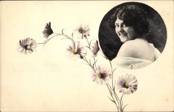 Ak Portrait einer Frau, Blüten