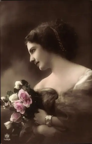 Ak Portrait einer Frau, Blumenstrauß