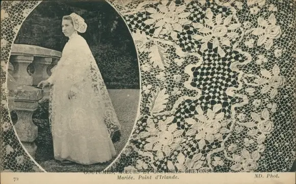 Ak Portrait einer Frau in bretonischer Tracht, Klöppelwerk