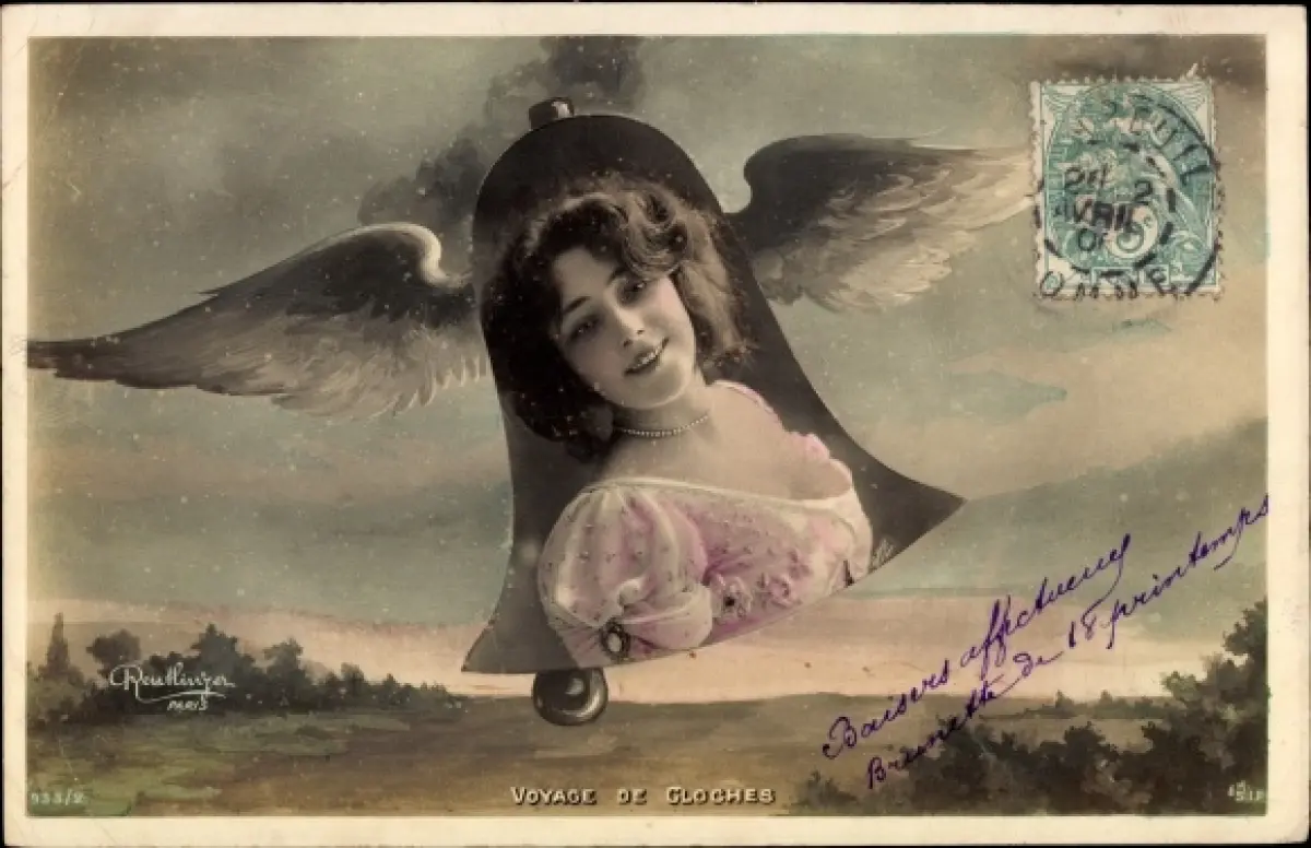 Ak Portrait einer Frau in einer geflügelten Glocke
