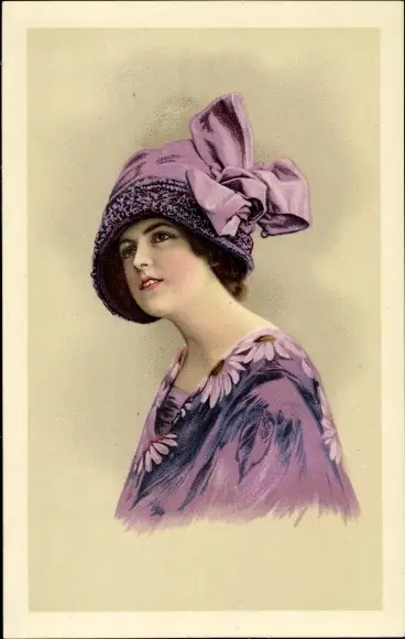 Ak Portrait einer Frau in lila Kleid mit Hut