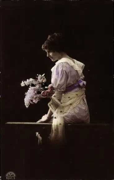 Ak Portrait einer Frau mit Blütenzweigen