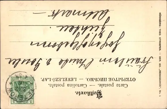 Zustand, siehe Scan, gelaufen, 1902- Stroefer Ser. 183 Renaissance No. 1 - ca 9 cm X 14 cm