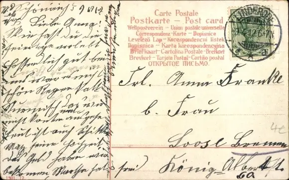 Zustand, siehe Scan, gelaufen, 1912 - ca 9 cm X 14 cm