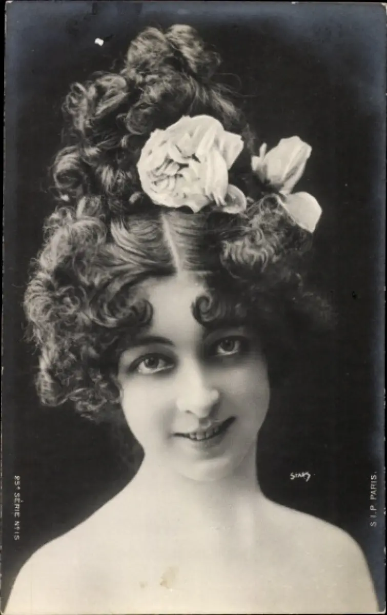 Ak Portrait einer jungen Frau mit Blumen im Haar