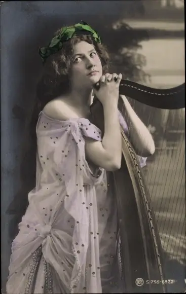 Ak Portrait einer jungen Frau mit Harfe, Musikinstrument