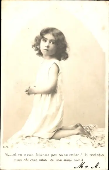Ak Portrait eines Mädchens in weißem Kleid, Gebet
